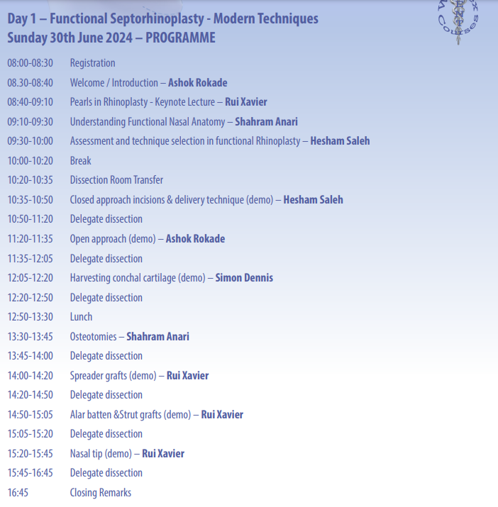 Day 1 - 30th June 2024 (Sunday): Functional Septorhinoplasty - Modern Techniques