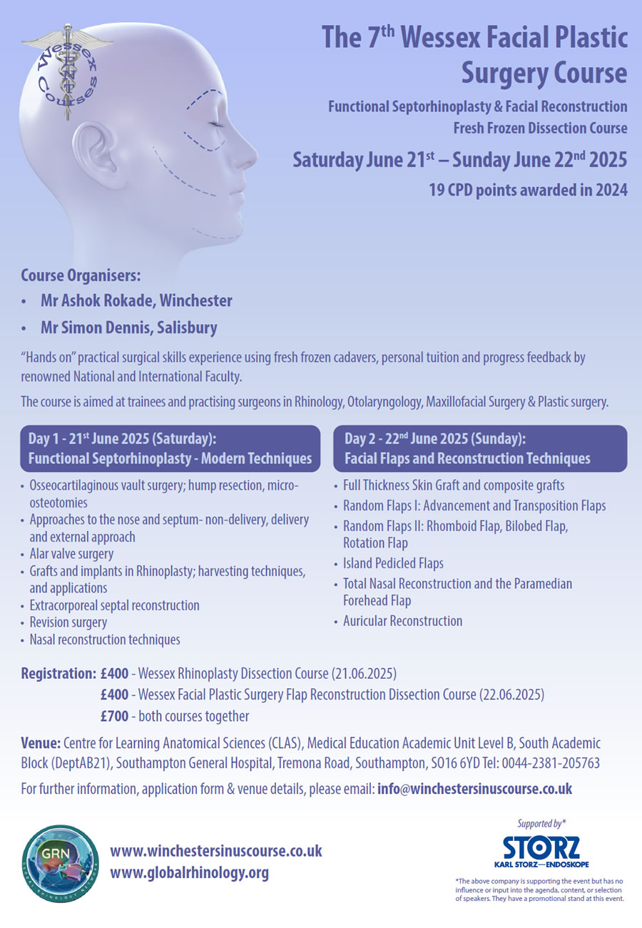 The course is aimed at trainees and practising surgeons in Rhinology, Otolaryngology, Maxillofacial Surgery & Plastic surgery.